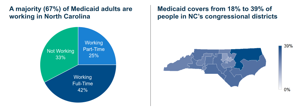 The program covers about 1 in 4 North Carolinians, including children, pregnant women, elderly residents, people with disabilities and working adults. It pays for half of all births in the state, covers 61% of nursing home residents and insures two in five children — with even higher rates in rural communities. Most adult Medicaid enrollees in North Carolina are working. About 42% work full-time and another 25% work part-time, according to 2025 data from KFF, a nonprofit health policy organization.
