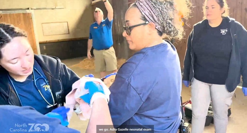 During the exam, the veterinary team checked the calf’s eyes, ears and mouth; evaluated joint alignment; monitored the heart and lungs; collected blood to confirm normal glucose levels; and completed required microchipping and vaccination. Veterinarians said the calf is healthy and nursing well. She is also the first female Addra gazelle born at the zoo this season.