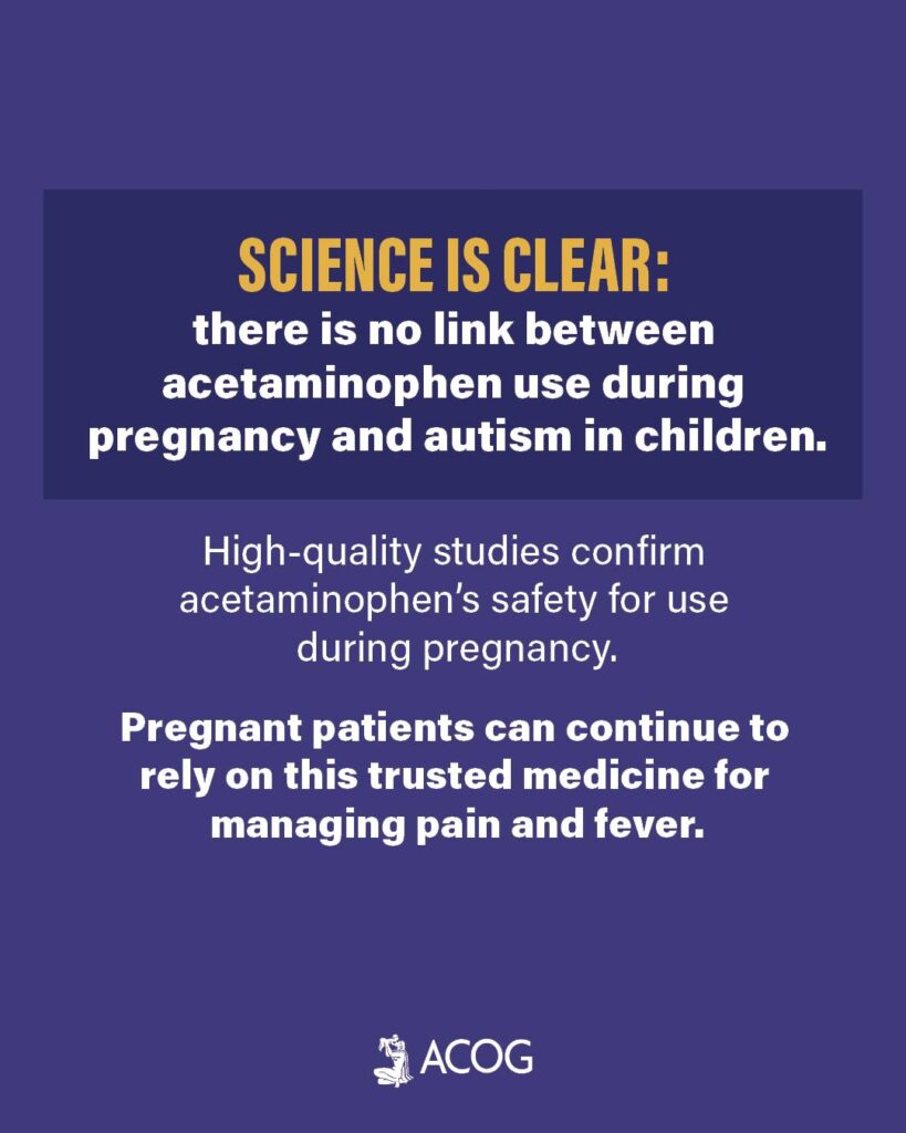 The American College of Obstetricians and Gynecologists (ACOG) quickly pushed back on Monday’s announcement by the FDA and the White House. In a statement shared on social media, ACOG reinforced there is no link between acetaminophen use during pregnancy and autism in children.